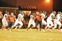 Isaiah Bowers runs for the corner ahead of a number of Bulldog
