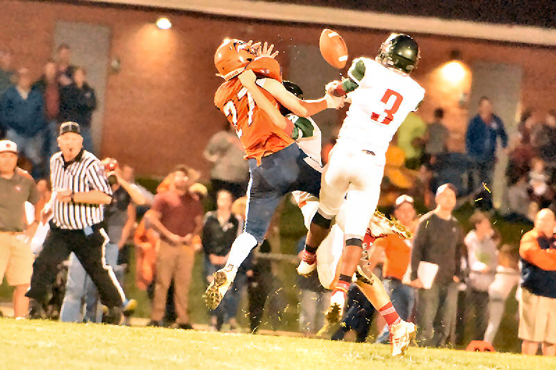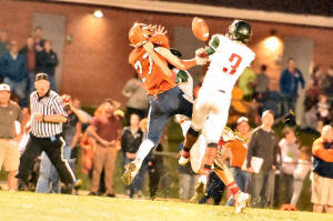 Junior Austin Sparrow and Senior Titus Cannon break up a pass in the