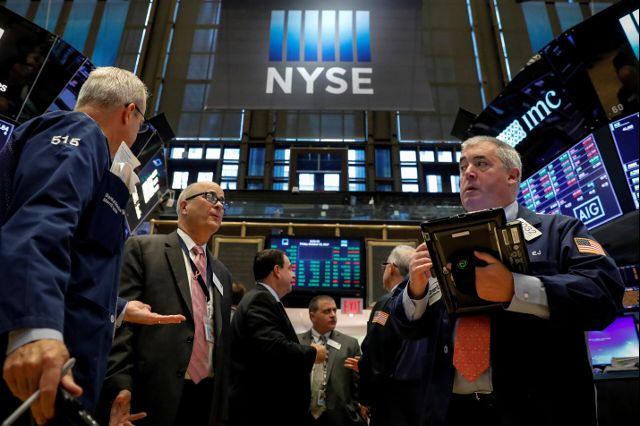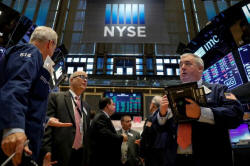 Traders work on the floor of the New York Stock Exchange (NYSE) in