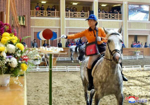 People take part in a horse riding game at the Mirim Equestrian