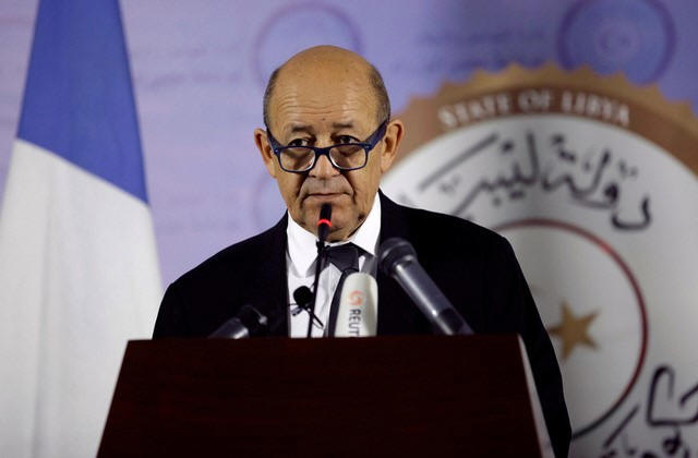 French Foreign Affairs Minister Jean-Yves Le Drian speaks during a