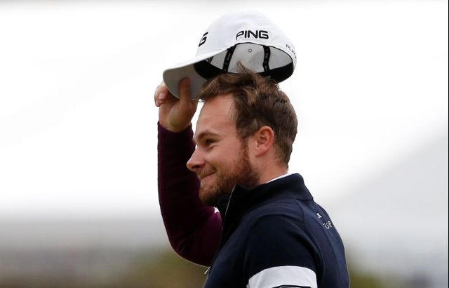England's Tyrrell Hatton celebrates winning the Alfred Dunhill