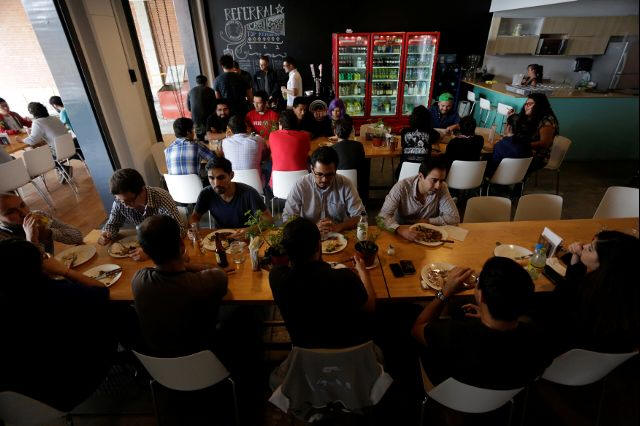 lunch at the company's canteen in Guadalajara, Mexico October 5,
