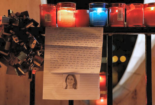 monument during a silent candlelight vigil to protest against her