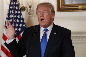President Donald Trump speaks about the Iran nuclear deal in the