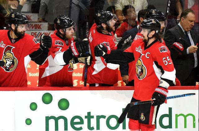 Ottawa Senators defenceman Erik Karlsson (65) celebrates after
