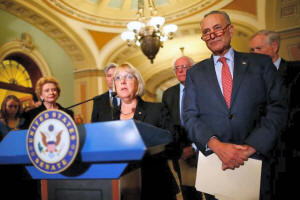 Senator Patty Murray (D-WA), flanked by Senate Minority Leader Chuck