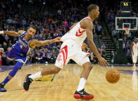 Kings guard George Hill (3) fouls Houston Rockets forward Trevor