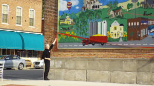 The 36 feet long by 8 feet tall mural, mounted on the side of the buildings owned by Peter and Andrea Niehaus, celebrates the history of the town with tributes to each of 22 landmarks within the community.