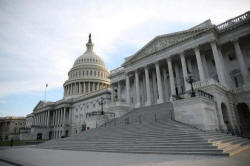 The U.S. Capitol Building is seen shortly before sunset in