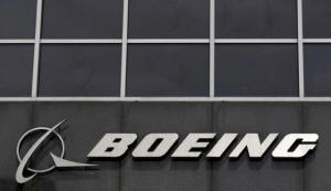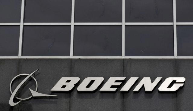 The Boeing logo is seen at their headquarters in Chicago, April 24,