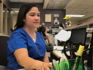 Registered nurse Kara Salonga, pictured at nursing station at the