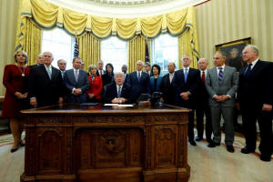 Human Services (HHS) Tom Price, as he signs an executive order