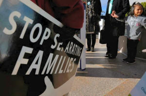 Demonstrators holding an "Interfaith Prayer Vigil for Immigrant