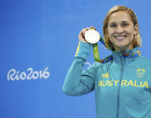 Madeline Groves (AUS) of Australia poses with her silver medal.