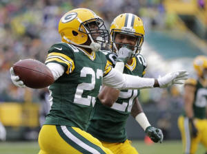 Packers cornerback Damarious Randall (23) celebrates after an
