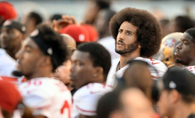 Colin Kaepernick (7) looks on before the national anthem against