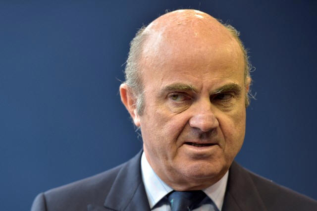 Spain's Finance Minister Luis de Guindos talks to journalists after a European Union finance ministers' meeting in Luxembourg, October 10, 2017. REUTERS/Eric Vidal |