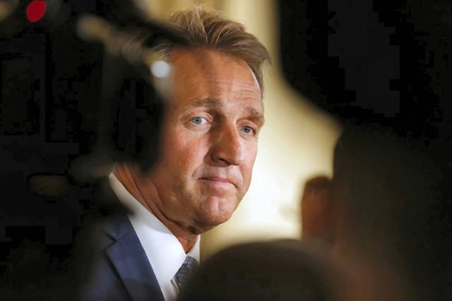 U.S. Senator Jeff Flake (R-AZ) faces reporters after announcing he