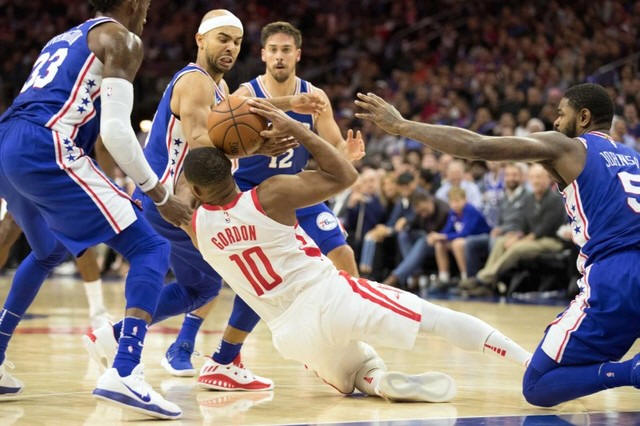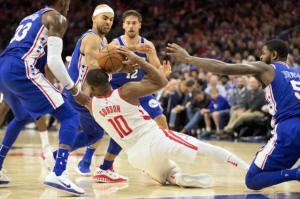 Rockets guard Eric Gordon (10) and Philadelphia 76ers guard Jerryd