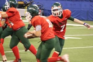 #7 Elijah Pollice hands off to Tony Gandolfi -#17