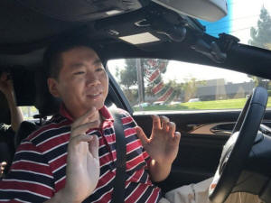 Nullmax CEO Lei Xu drives a Lincoln MKZ sedan equipped with his