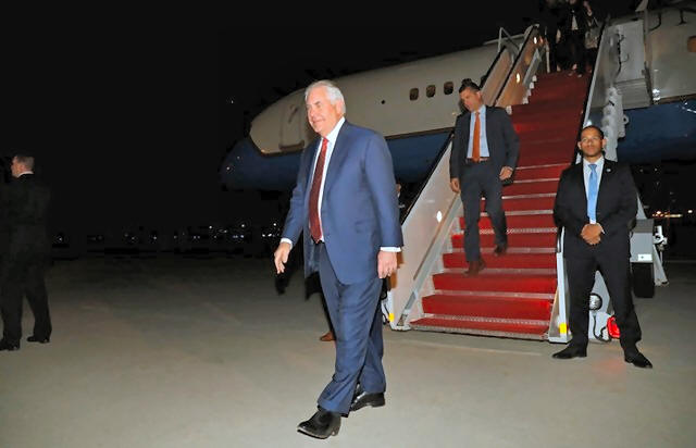 U.S. Secretary of State Rex Tillerson arrives back at Joint Base