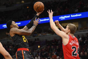 Hawks forward Kent Bazemore (24) shoots against Chicago Bulls