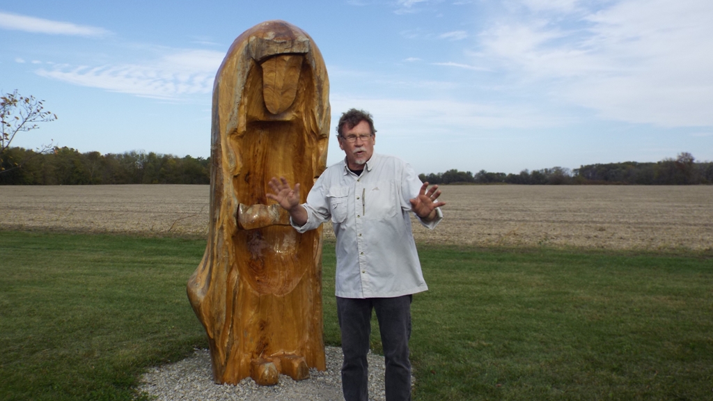 eight-foot tall wood sculpture created by Lincoln artist Moses