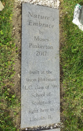 feet of the statue reads, “Nature’s Embrace by Moses Pinkerton 2017
