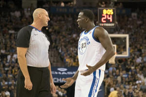referee Eric Dalen (37, left) after receiving a technical foul