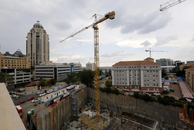 Construction is seen below the skyline of Johannesburg's upmarket
