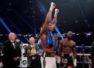 titles when he stopped bloodied challenger Carlos Takam in the 10th
