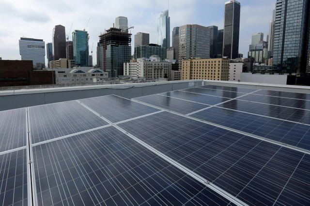 solar-powered net-zero apartments in Los Angeles, California, U.S.,