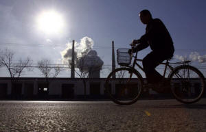 workman riding a bicycle in Beijing December 14, 2010. REUTERS/David