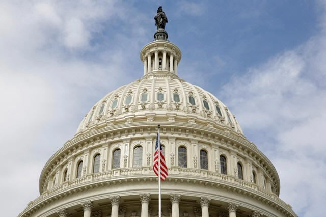 The U.S. flag flies in front of the Capitol Dome at the U.S. Capitol