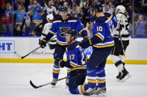 assisted on another to lead St. Louis to a win over Los Angeles in