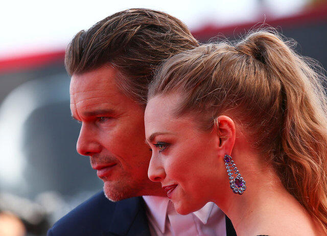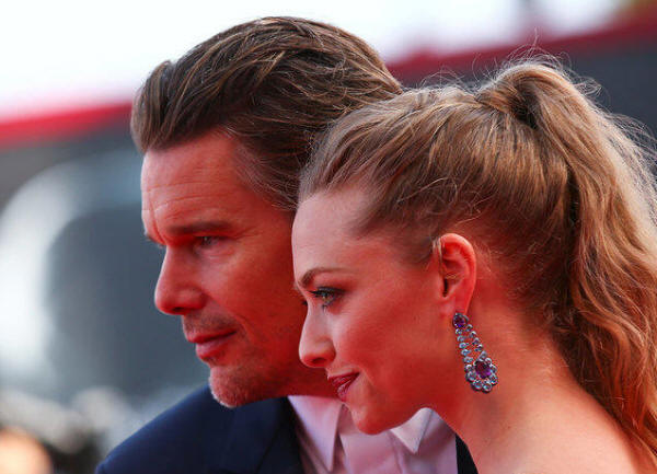 Ethan Hawke (L) and Amanda Seyfried pose during a