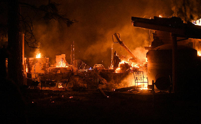 consume a garage as the Ponderosa Fire burns east of