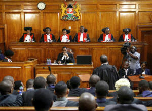 Judges sit in court as President Uhuru Kenyatta's election win was
