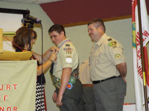 his Eagle Scout pin from his mother Sarah, then in turn presented