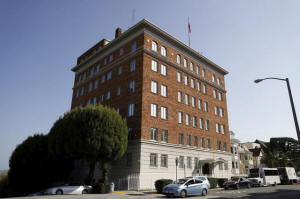The entrance to the building of the Consulate General of Russia is