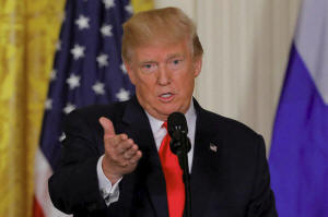 President Donald Trump holds a news conference at the White House in