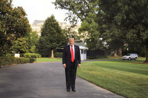 President Donald Trump stops as he arrives at White House after a trip to Springfield, Missouri, in Washington D.C., August 30, 2017. REUTERS/Carlos Barria |