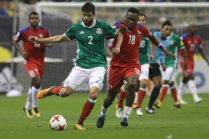 Mexico's player Nestor Araujo and Panama's player Luis Tejeda in