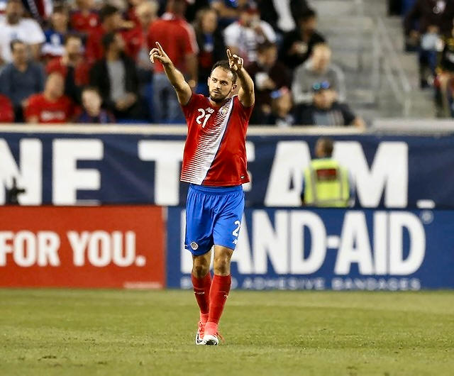 Costa Rica forward Marco Urena (21) reacts after scoring a goal