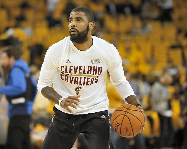 Cavaliers guard Kyrie Irving warms up before game one of the Finals