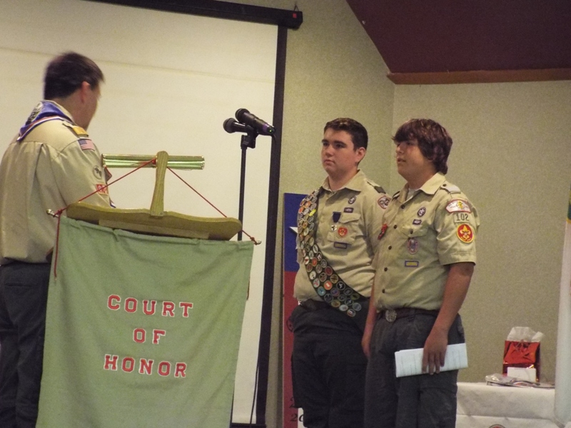 Ed Robison, the current leader of the troop 1102 was called forward to lead the two in the Eagle Oath.