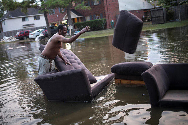 Vince Ware moves his sofas onto the sidewalk from his house which