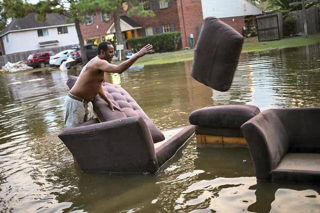 Vince Ware moves his sofas onto the sidewalk from his house which